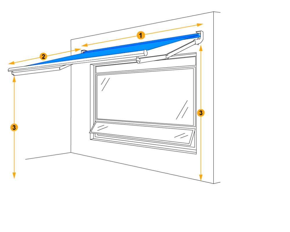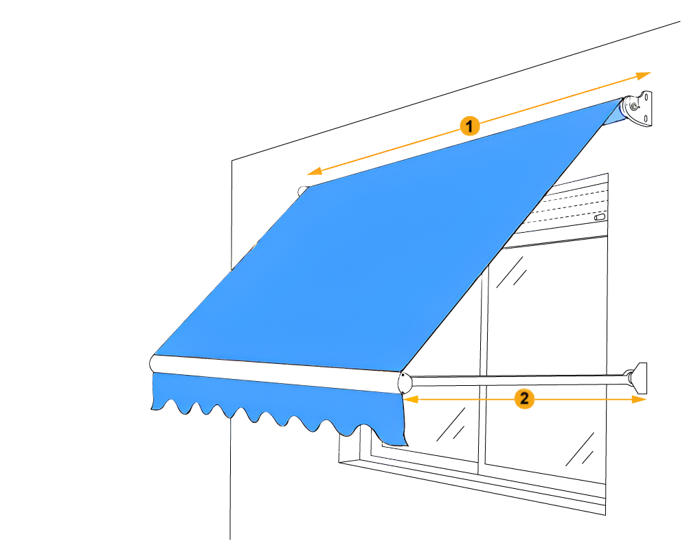 Estos toldos son ideales para instalar en ventanas o fachadas. Al igual que los brazos stor es importante considerar dónde se anclará, si a techo, a pared o entre paredes. Te explicamos a continuación cómo tomar las medidas de forma correcta: