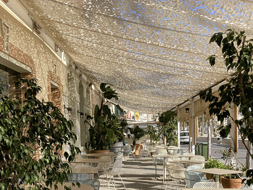 En Transol trabajamos con una amplia gama de tejidos como las redes de sombra. Se trata de una red troquelada que permite el paso del viento, ofreciendo una mínima resistencia al mismo, a la lluvia y las cargas de nieve, que permite ser instalada en grandes espacios.