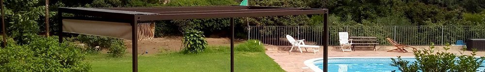 Las pérgolas de aluminio con toldo plano corredero están dotadas de un sistema versátil y polivalente que facilitan su instalación en superficies irregulares gracias a la sencillez de sus formas.