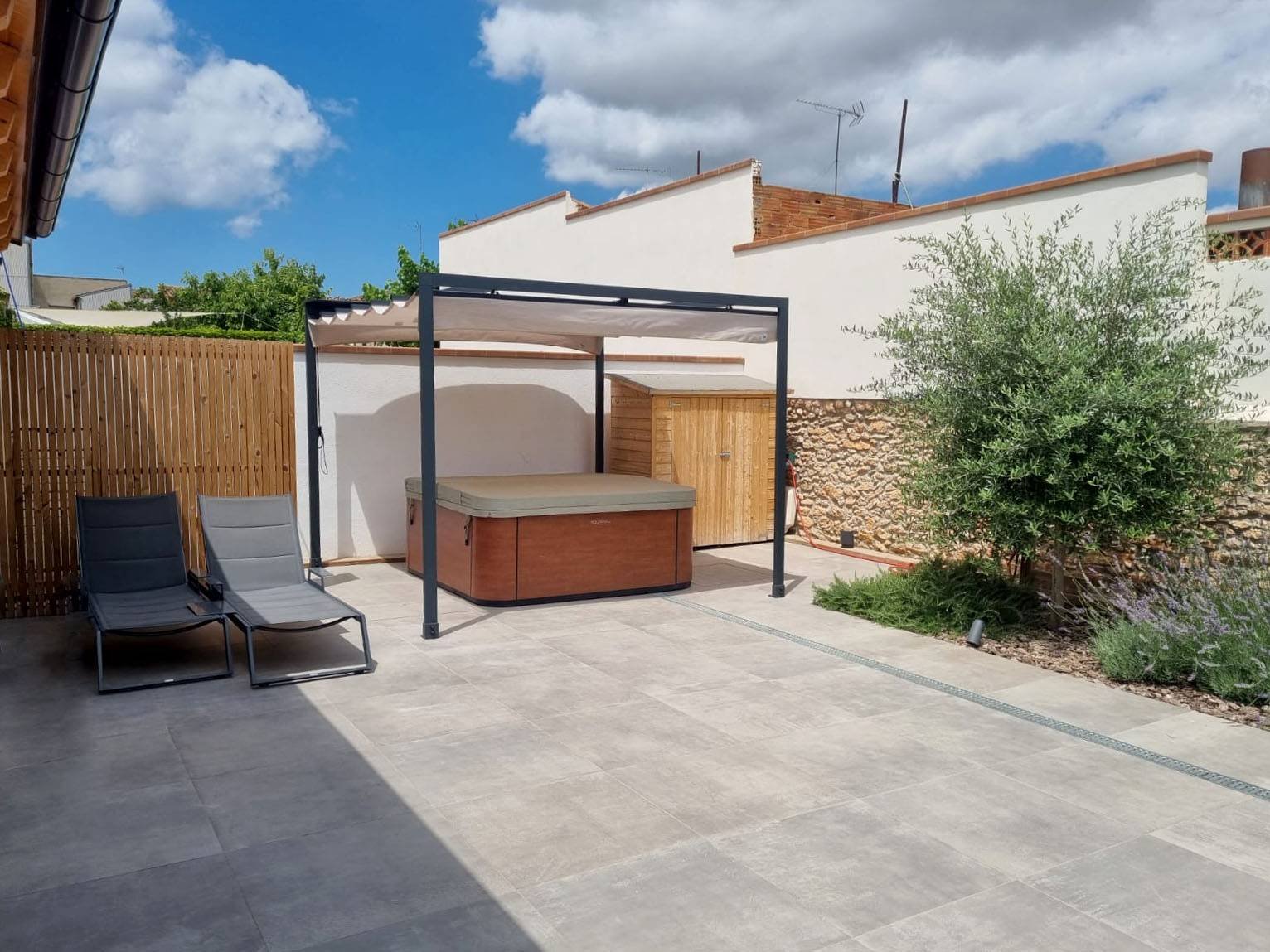 Está pensada para ser instalada en terrazas, restaurantes, áticos, patios o jardines, se adapta a cualquier entorno.