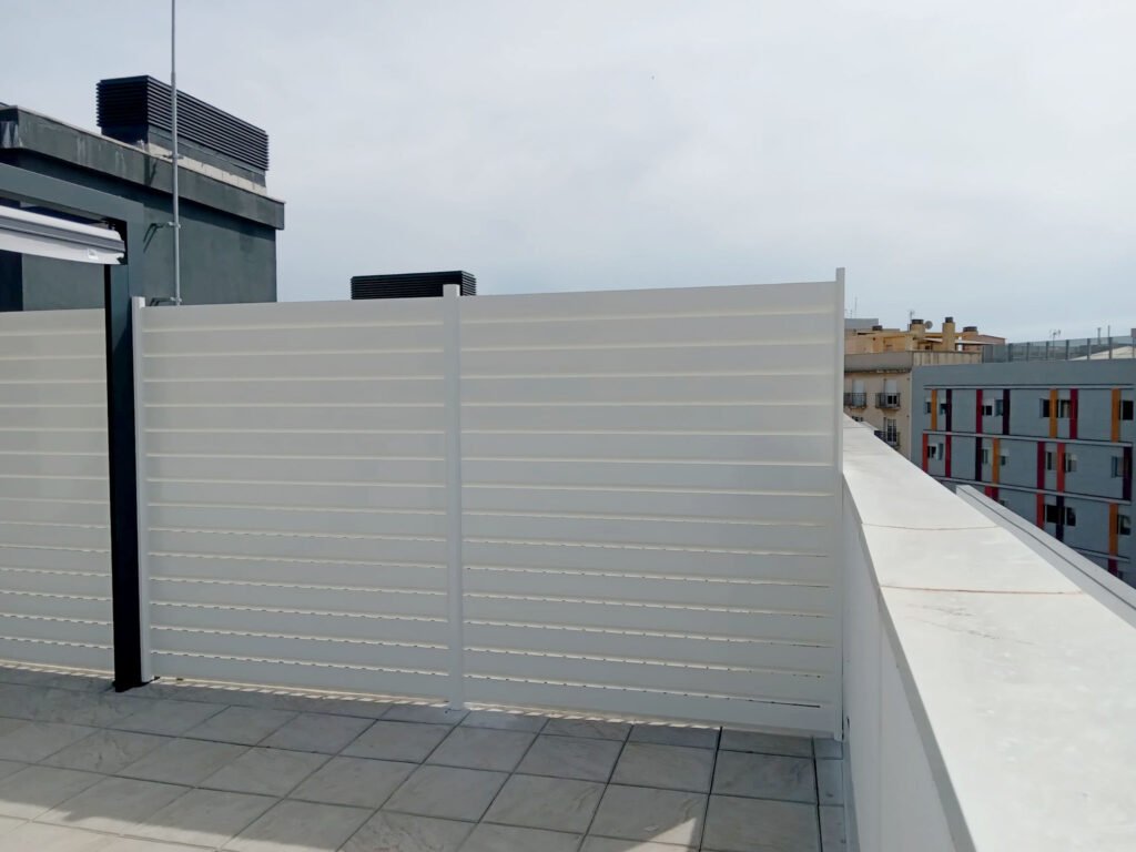 Se trata de vallas con panel macizo sin ningún tipo de vis-à-vis o sin visibilidad pero que dejan pasar el aire y, al mismo tiempo, permiten ver el exterior sin ser visto.